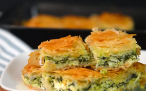 Spanakopita merupakan makanan utama di kawasan yunani. Bahan utama makanan ini ialah bayam dan keju feta.